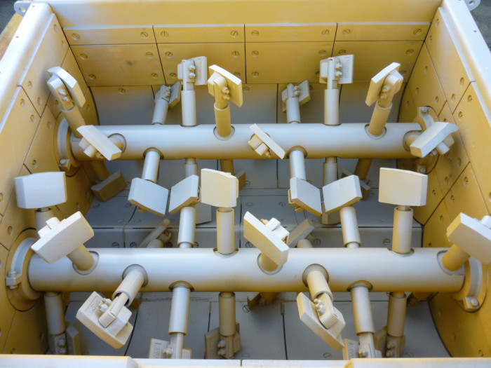 與日本德島大學共同研發(fā)的攪拌器具有以下特點:雙臥軸強制式攪拌器,長軸短臂,淺底結構。內部襯板、葉片采用高強度鑄鐵,耐磨,使用壽命長。攪拌器配有電加熱裝置,避免剛開機時缸冷和瀝青粘結。底門采用大型滑門,排料迅速。葉片實現(xiàn)三維空間的快速混合,提高拌和量和攪拌速度,從而使設備的生產(chǎn)能力得到了大幅提升。